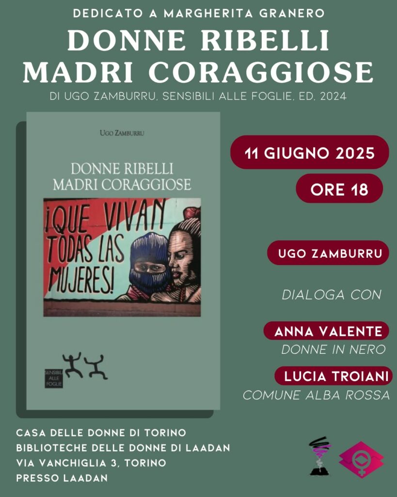 Mercoledì 11 giugno 2025, incontro sul libro Donne ribelli, madri coraggiose di Ugo Zamburru. Sala Ronco, Centro culturale e sociale delle donne. Via Vanchiglia 3 – Torino